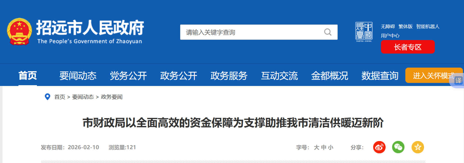 超3.37亿元 16万余户!山东招远清洁取暖全力支持电代煤、气